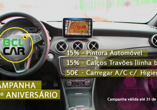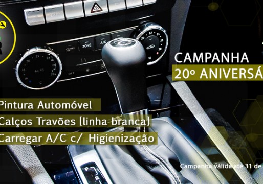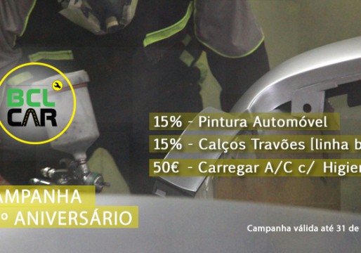 Campanha de aniversário: 15% de desconto em calços de travões Pintura automóvel com 15% desconto Carregar o A/C Com Higienização – 50€ Campanha vál -